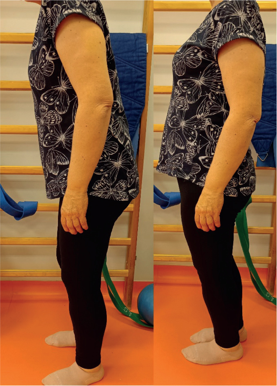 No physical therapy treatments were used at any stage. In the final interview, the patient reported episodic pain in the pelvis and thoracolumbar spine, especially in situations of increased stress. There was a quantitative improvement in gait function, measured by the distance covered without feeling pain or fatigue, as well as a qualitative improvement towards normalization of the gait pattern. In order to prolong the effects achieved during physiotherapy, the patient was recommended physical activity in the form of walks lasting no longer than 60 minutes at a time. No imaging or laboratory tests were performed during the intervention. The patient participated in all therapy sessions without any absences. Physiotherapy treatment, apart from pain in response to fascial techniques, did not result in any adverse events that would warrant its discontinuation. The intervention produced a number of quantitative end results (Table 3).