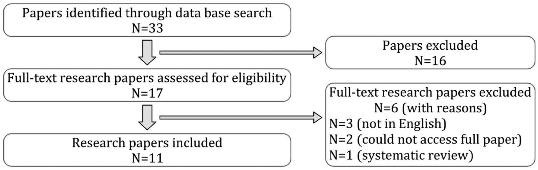 From the aforementioned databases, 31 articles in English were selected, concerning the issues of the impact of physical activity on supporting emotional intelligence in the treatment of depressive disorders. Eleven papers were chosen for more thorough analysis, as they met high methodological requirements, as well as the following inclusion criteria:
