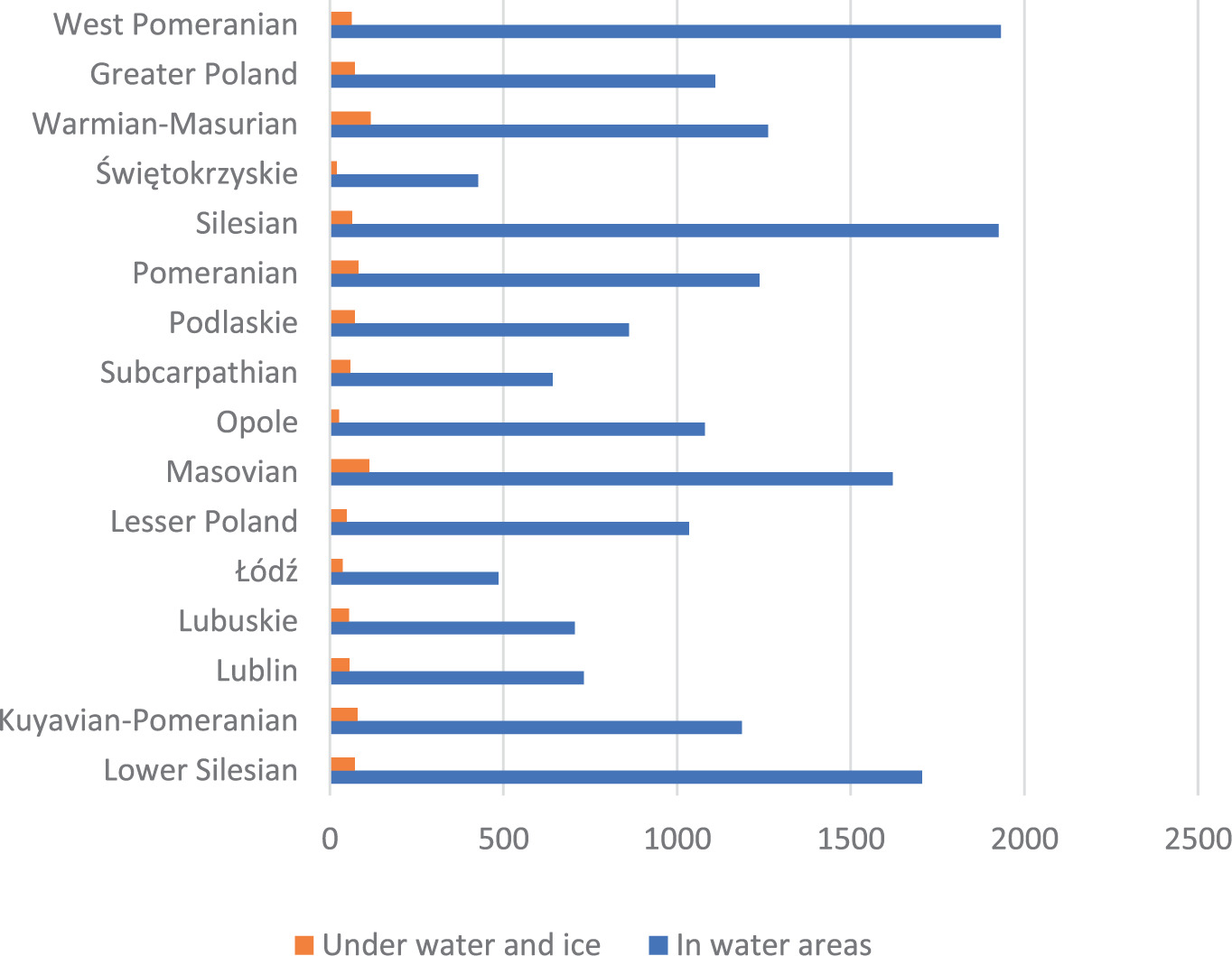 | Year | In water areas | Under water and ice |