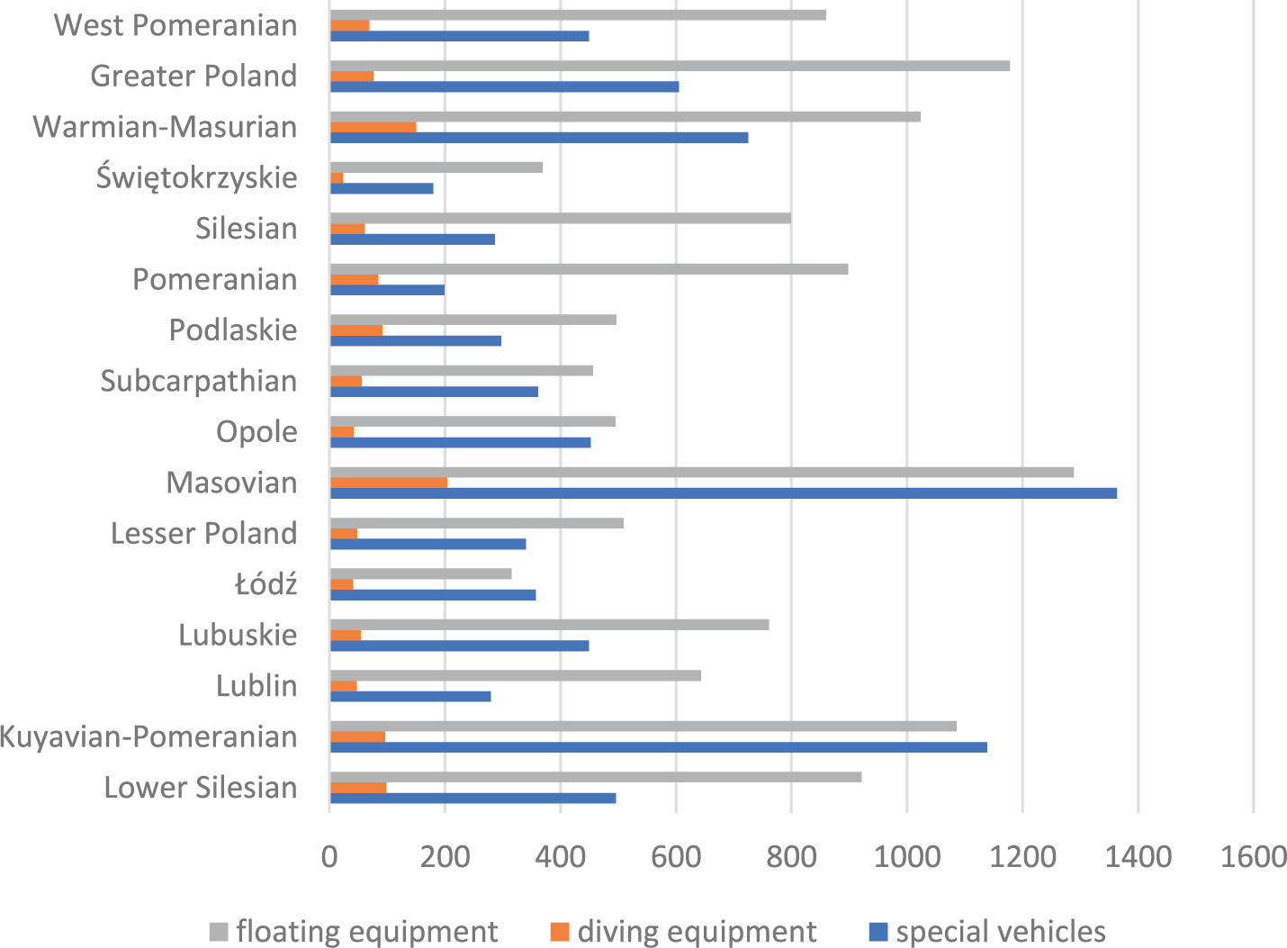 Water rescue per voivodeship – the equipment used