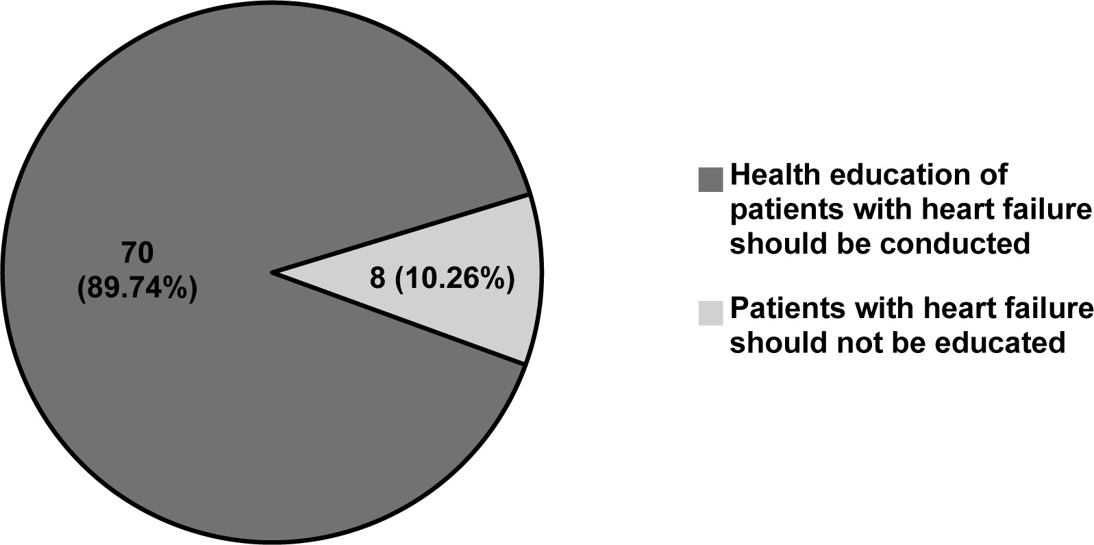 Only about 10% (8; 10.26%) of the respondents claimed that there is no need to educate patients with heart failure.